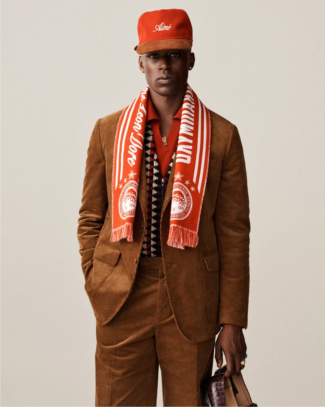 O logo bordado Aimé Leon Dore reforça a autenticidade, enquanto a construção em 5 painéis oferece um ajuste anatômico clássico.