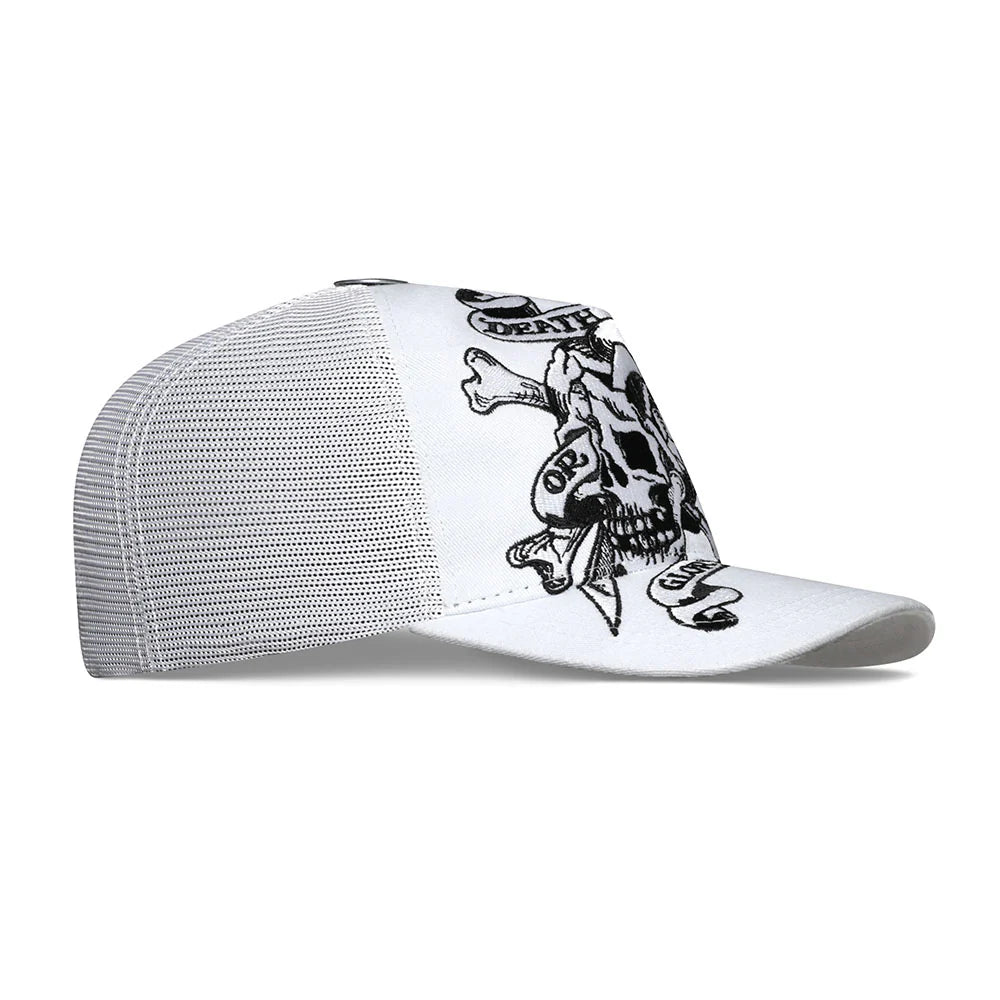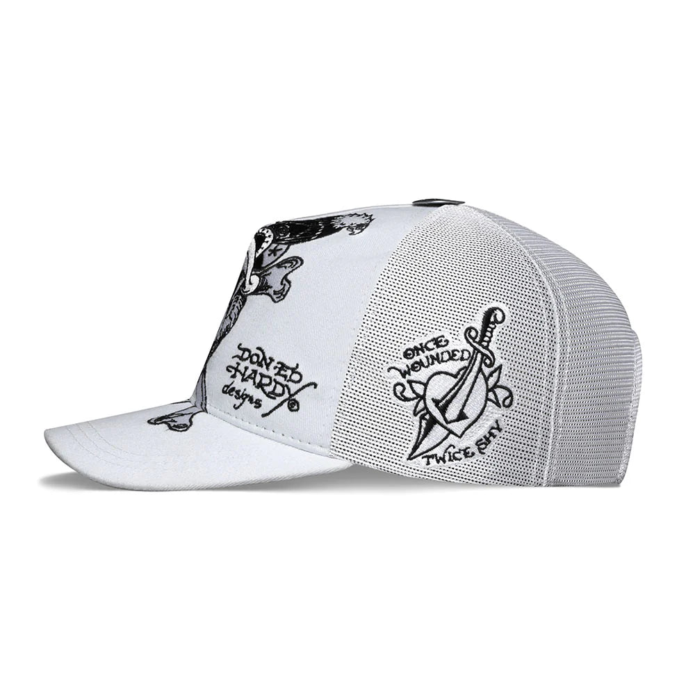 Boné Ed Hardy Trucker Deathorglory "White" Branco, disponível na Cop Club.