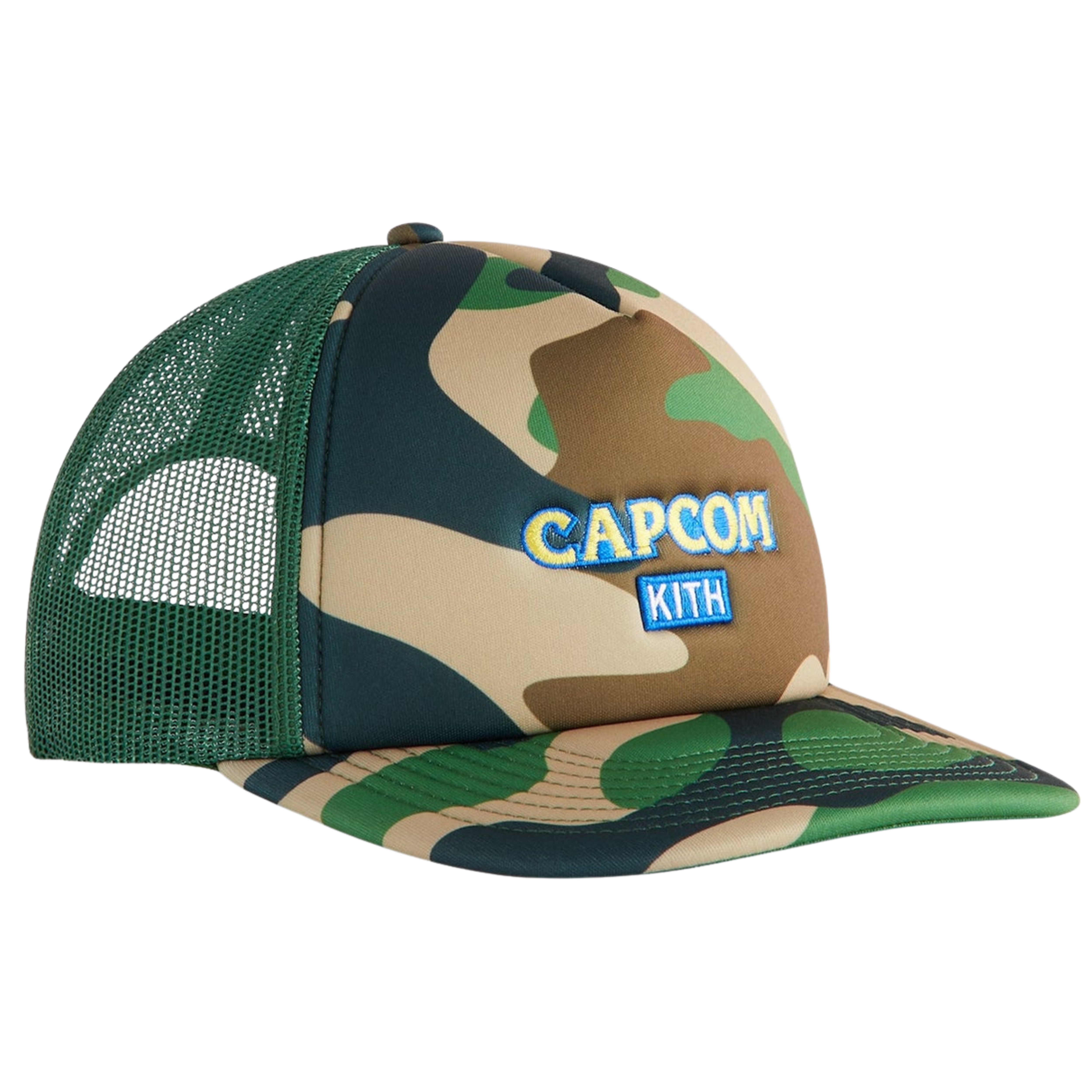 Boné Kith x Capcom Marvel vs. Capcom Collection Nolan Trucker "Camo" Verde, disponível na Cop Club.