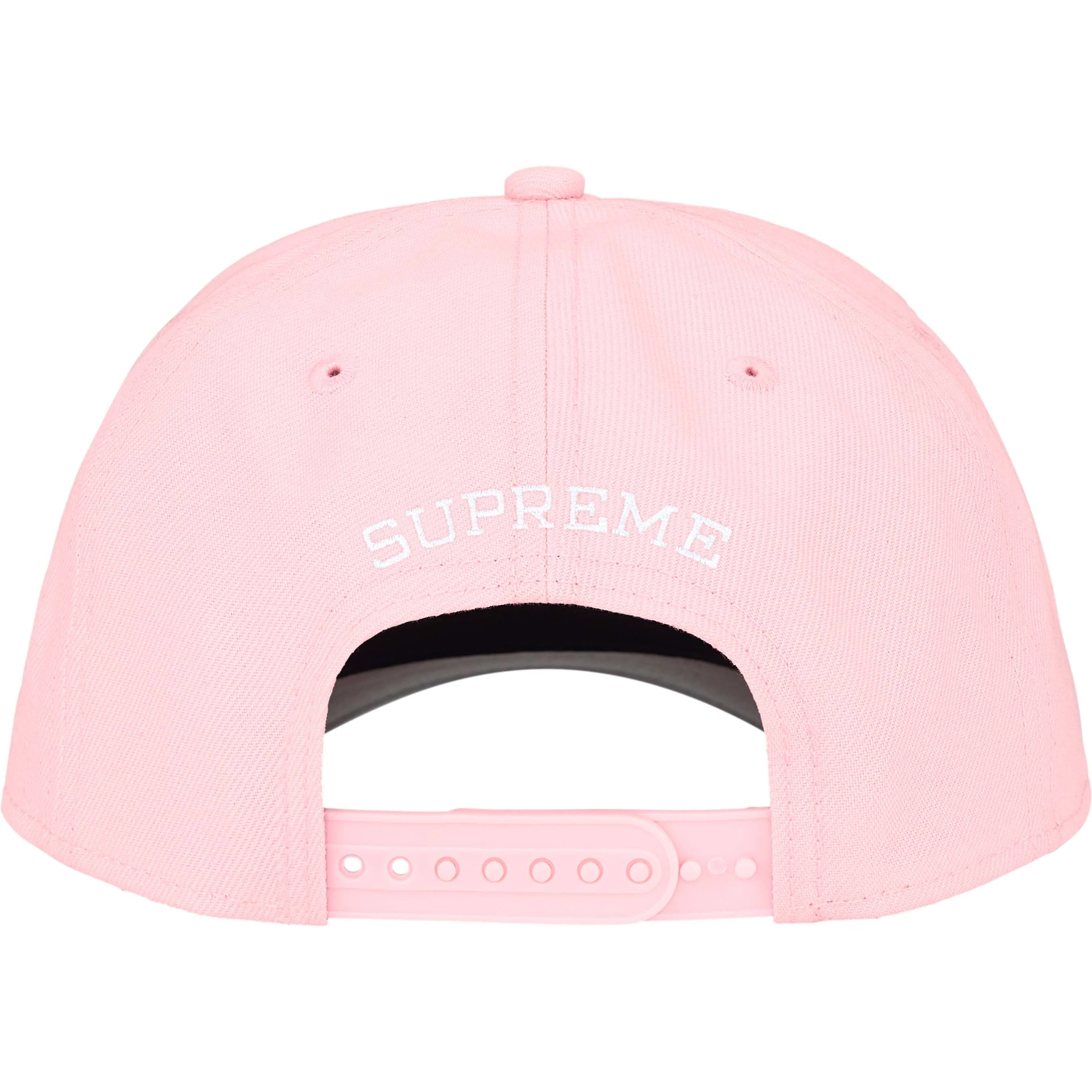 Boné Supreme Sharp Spellout Adjustable New Era FW25 "Light Pink" Rosa, disponível na Cop Club.