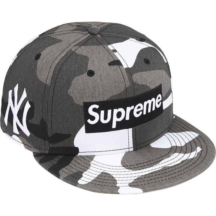 Boné Supreme x New Era x MLB Teams Box Logo FW25 "Snow Camo - New York Yankees" Cinza, disponível na Cop Club.