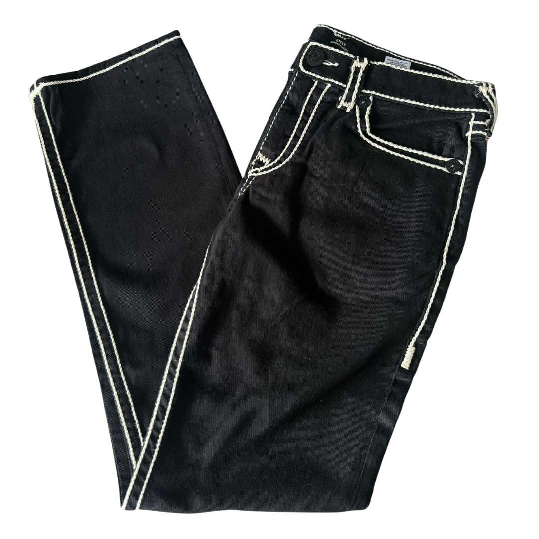 Calça True Religion "Ricky Super T Rope Stitch Straight" Preto, disponível na Cop Club.