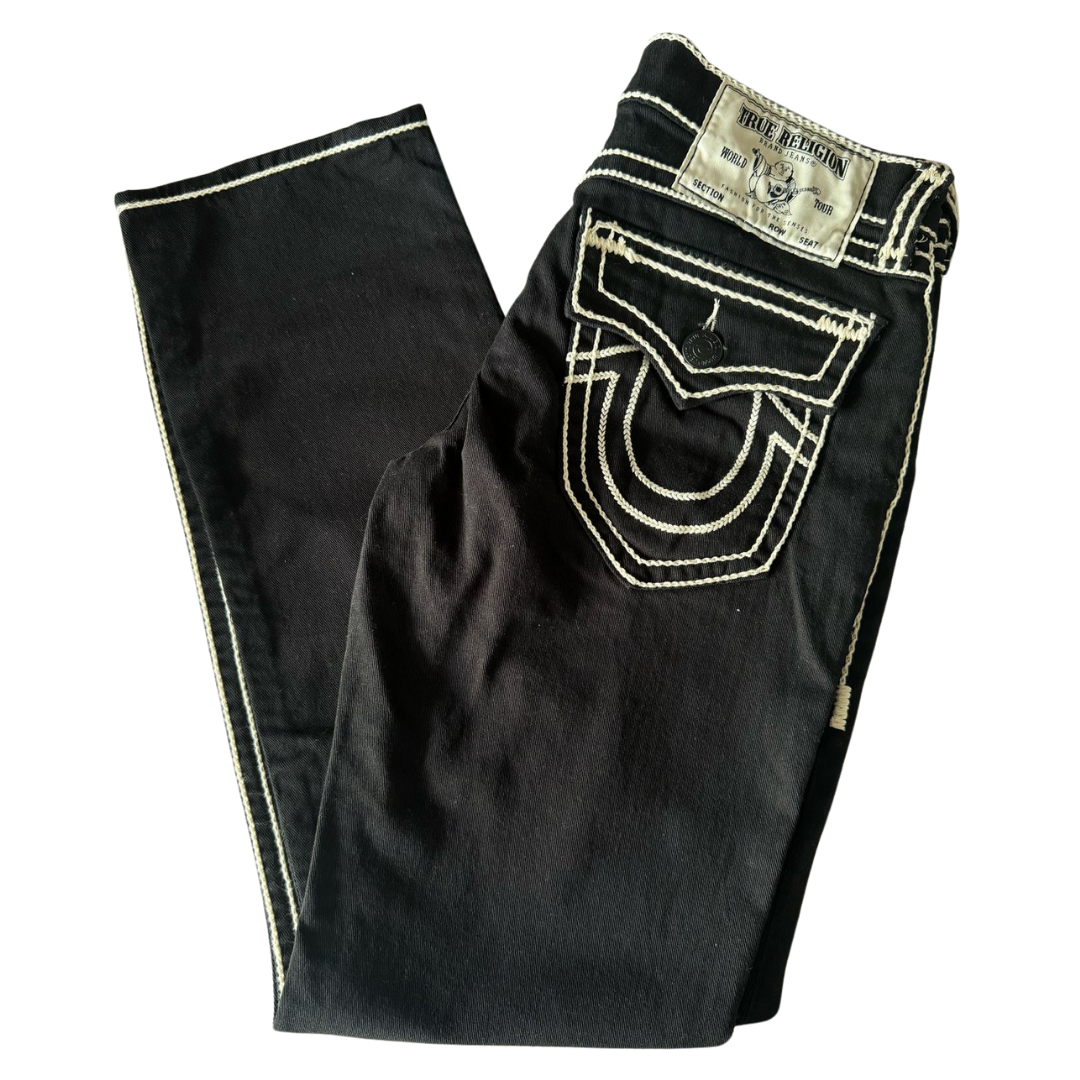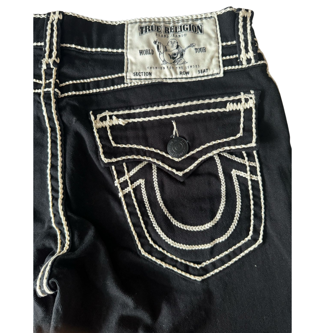 A True Religion é uma marca americana de moda fundada em 2002 por Jeff Lubell e Kym Gold, com sede em Gardena, Califórnia. A marca é conhecida por seus jeans premium, oferecendo alta qualidade com designs ousados e detalhes distintos. Caracterizados por costuras exageradas e o icônico logotipo de ferradura nos bolsos traseiros. A True Religion continua a ser uma marca influente no mercado de moda. Apesar dos desafios financeiros enfrentados no passado, sua capacidade de inovação e adaptação às tendências atuais reforça sua posição como uma marca de destaque no segmento de denim premium.