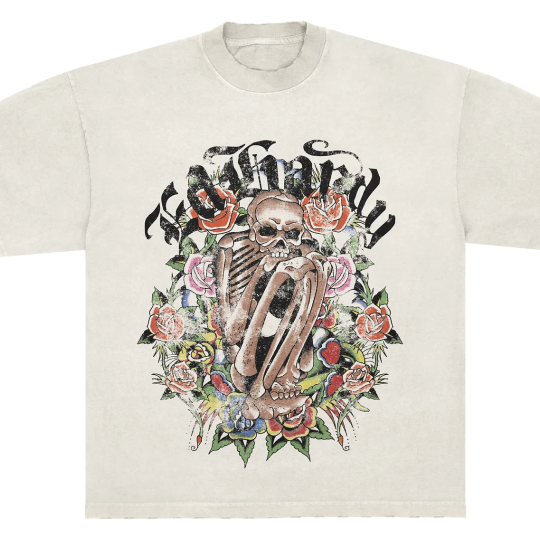 Camiseta Ed Hardy x Matue Garden of Bones "Off-White" Branco, disponível na Cop Club.
