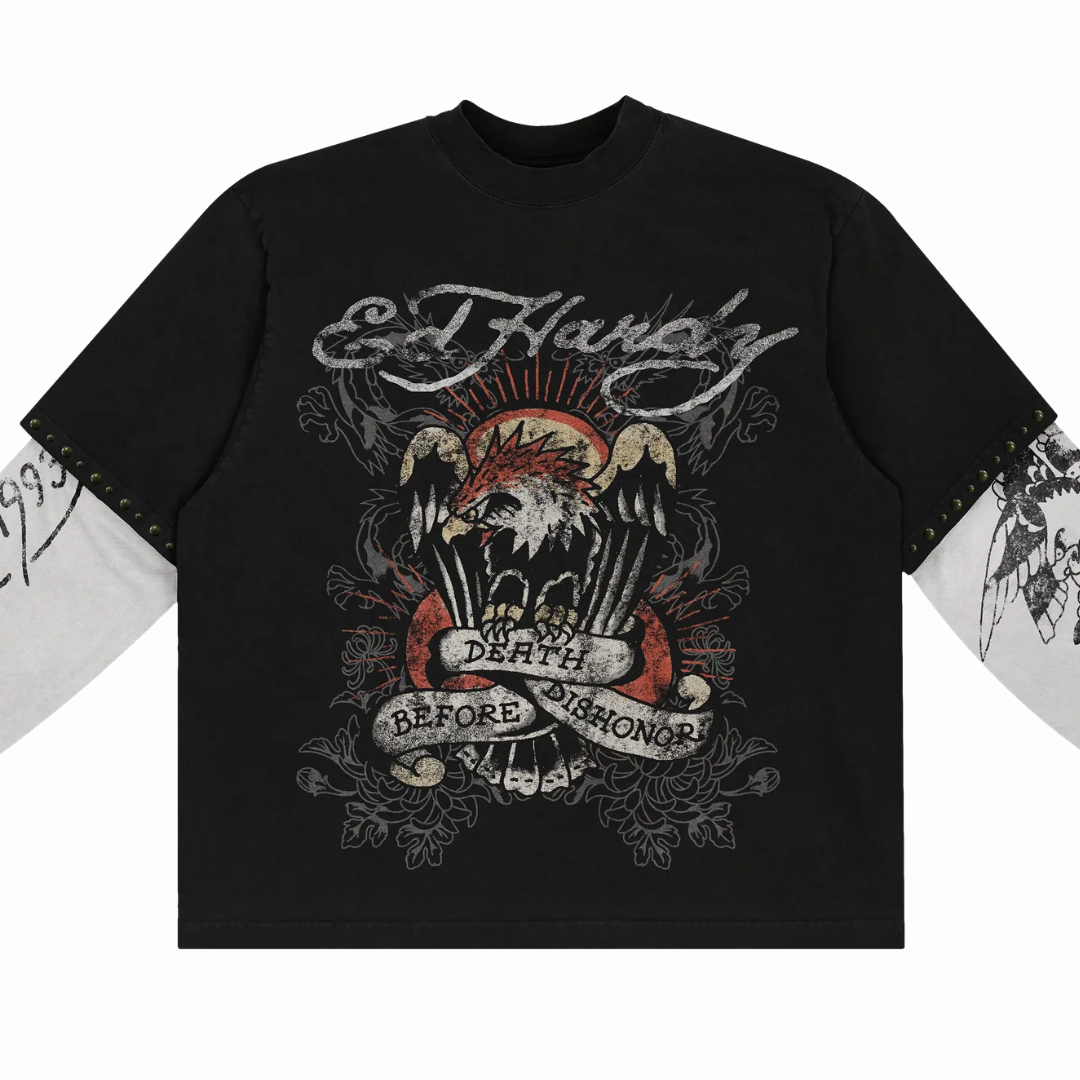 Camiseta Manga Longa Ed Hardy x Matue Death Before Dishonor "Black" Preto, disponível na Cop Club.