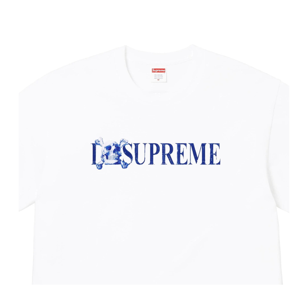 Camiseta Supreme Skull FW25 "White" Branco, disponível na Cop Club.