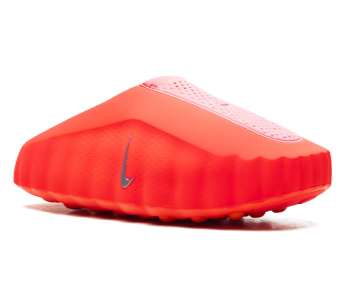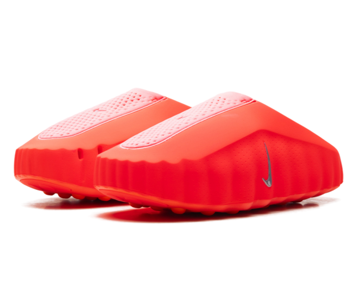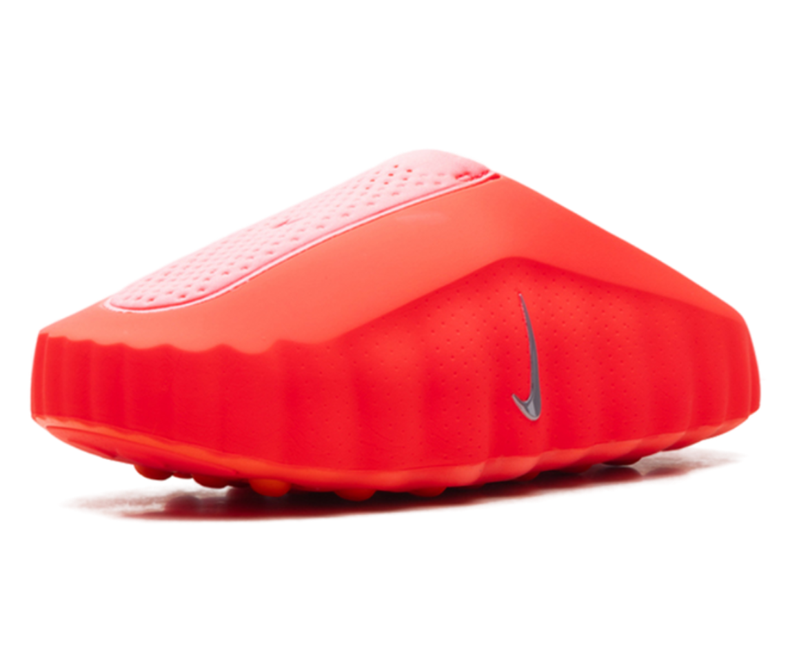 Um tênis slip-on futurista para recuperação, conhecido por sua vibrante cor vermelha, Swooshes refletivos e design sensorial exclusivo com cápsulas esféricas que massageiam os pés, visando melhorar o foco e o relaxamento por meio de elementos inspirados na neurociência, combinando conforto com estilo arrojado.