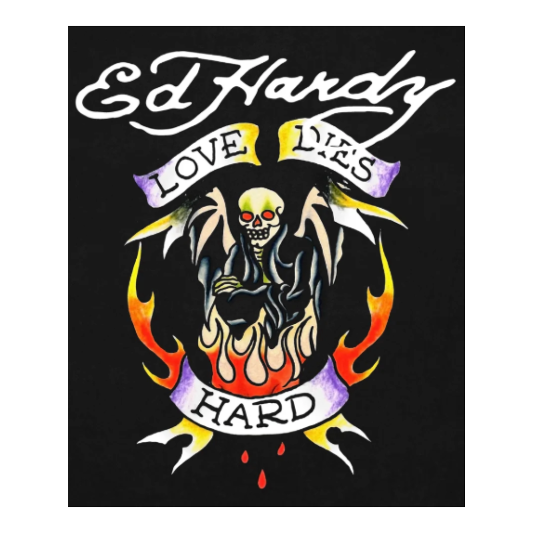 A história começa com Don Ed Hardy, um tatuador norte-americano que ganhou fama mundial por misturar estilos tradicionais japoneses e americanos em suas artes corporais. Nascido em 1945, ele ficou conhecido como o “Godfather of Modern Tattoo” (“padrinho da tatuagem moderna”). Seu estilo único, cheio de caveiras, tigres, corações, águias e dragões, se tornaria a base da identidade visual da futura marca. Nos anos 2000, o empresário francês Christian Audigier, conhecido por trabalhar com marcas como Von Dutch, obteve a licença para usar as artes de Don Ed Hardy em roupas.