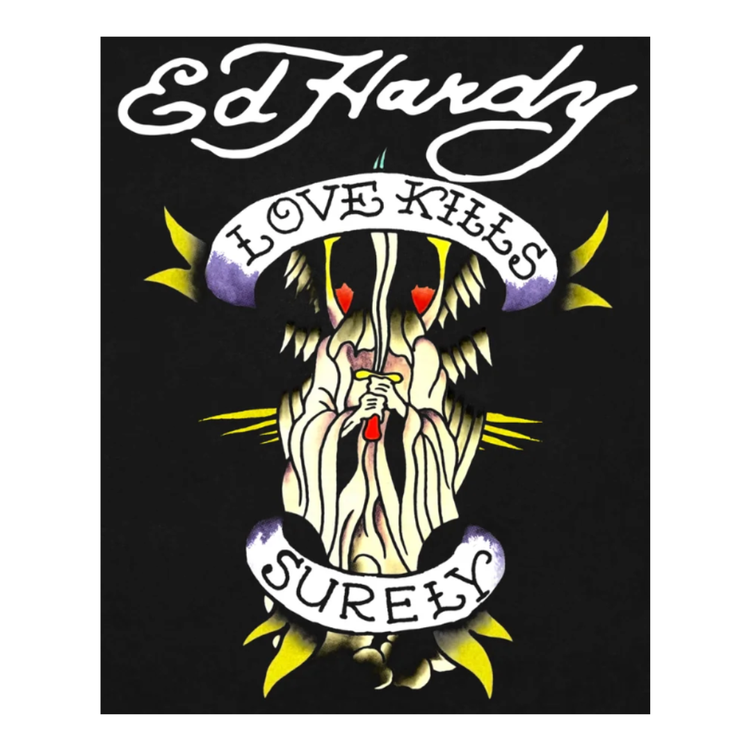 A história começa com Don Ed Hardy, um tatuador norte-americano que ganhou fama mundial por misturar estilos tradicionais japoneses e americanos em suas artes corporais. Nascido em 1945, ele ficou conhecido como o “Godfather of Modern Tattoo” (“padrinho da tatuagem moderna”). Seu estilo único, cheio de caveiras, tigres, corações, águias e dragões, se tornaria a base da identidade visual da futura marca. Nos anos 2000, o empresário francês Christian Audigier, conhecido por trabalhar com marcas como Von Dutch, obteve a licença para usar as artes de Don Ed Hardy em roupas.