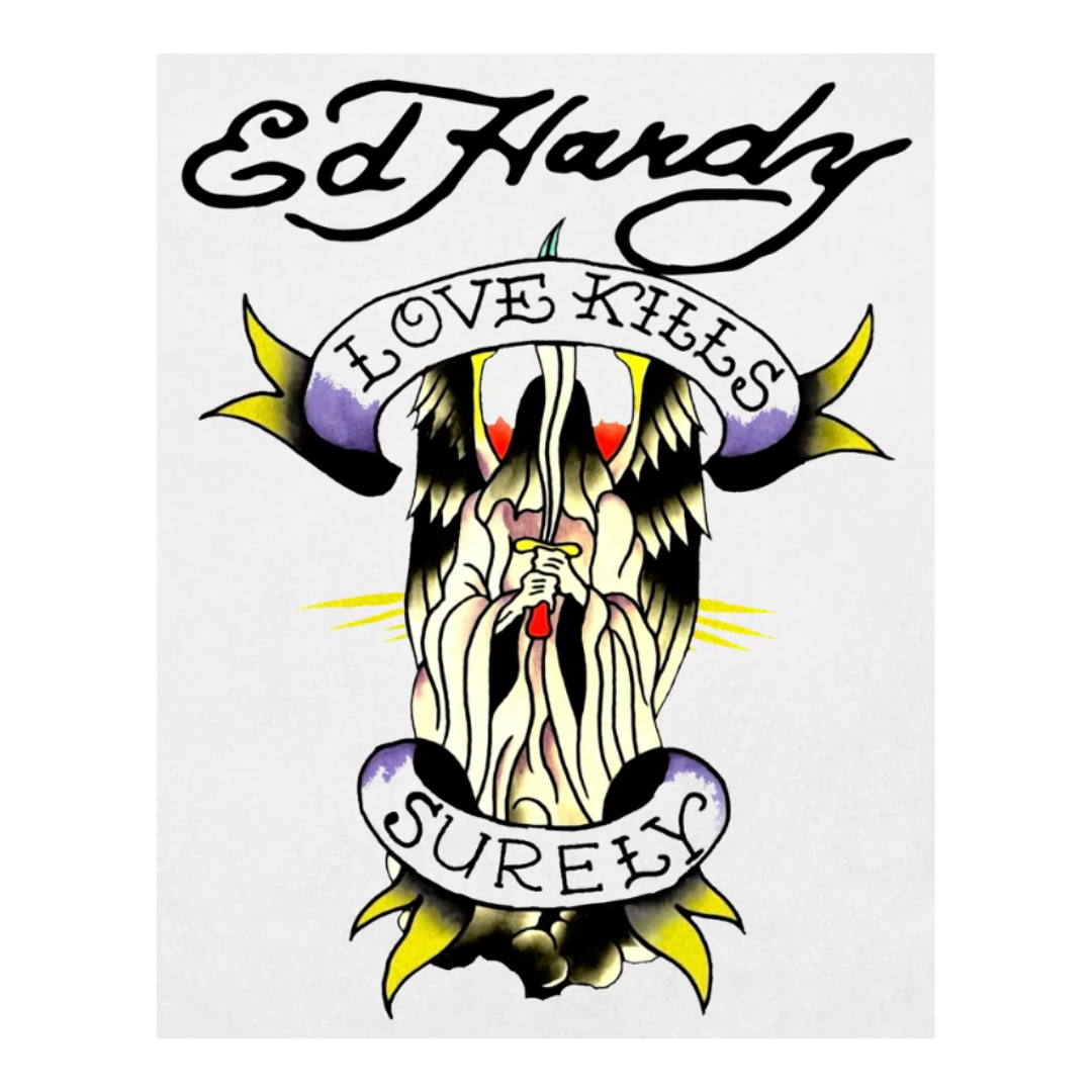 A história começa com Don Ed Hardy, um tatuador norte-americano que ganhou fama mundial por misturar estilos tradicionais japoneses e americanos em suas artes corporais. Nascido em 1945, ele ficou conhecido como o “Godfather of Modern Tattoo” (“padrinho da tatuagem moderna”). Seu estilo único, cheio de caveiras, tigres, corações, águias e dragões, se tornaria a base da identidade visual da futura marca. Nos anos 2000, o empresário francês Christian Audigier, conhecido por trabalhar com marcas como Von Dutch, obteve a licença para usar as artes de Don Ed Hardy em roupas.