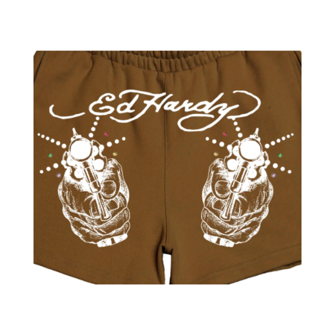 Shorts Ed Hardy Light Shot "Brown" Marrom, disponível na Cop Club.