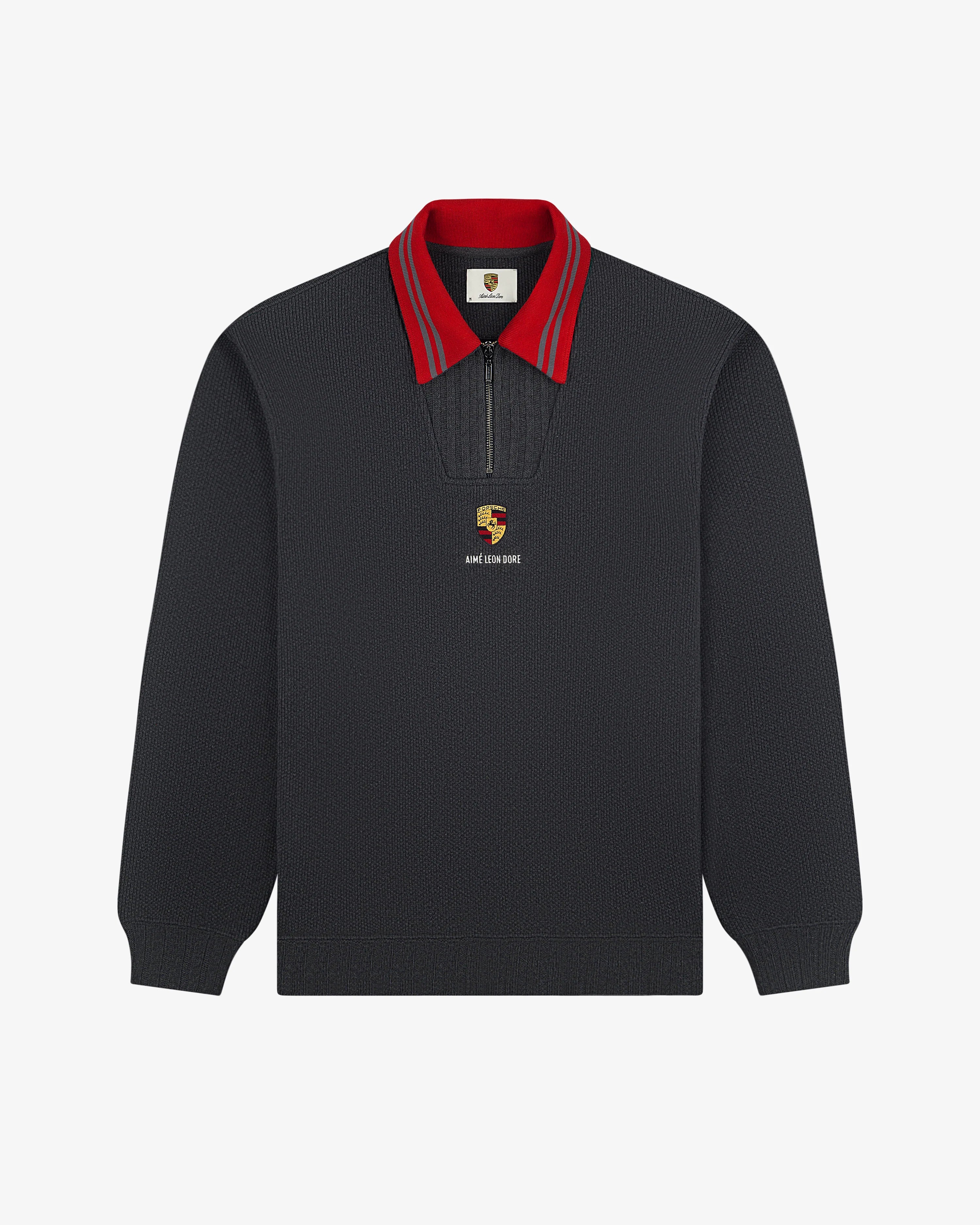Suéter Aimé Leon Dore x Porsche Collar Quarter Zip Pullover "Charcoal" Preto/Chumbo, disponível na Cop Club.