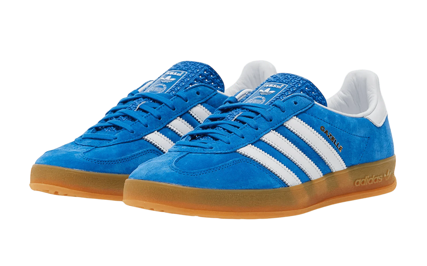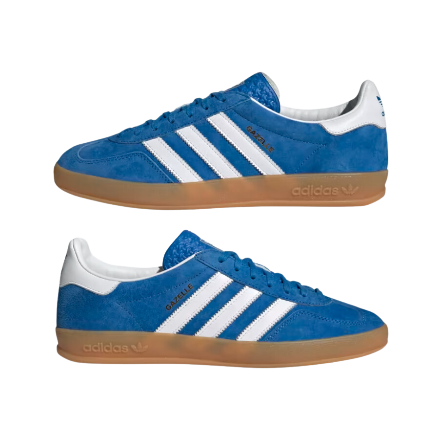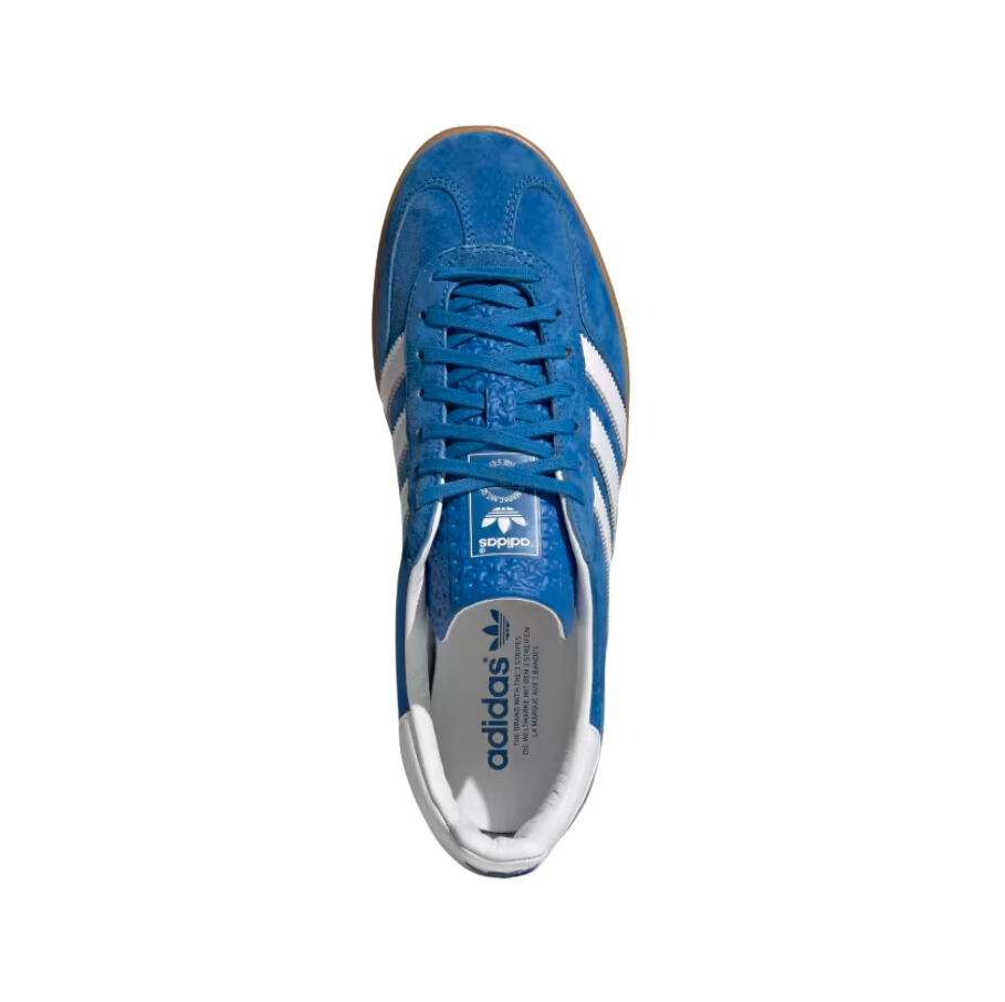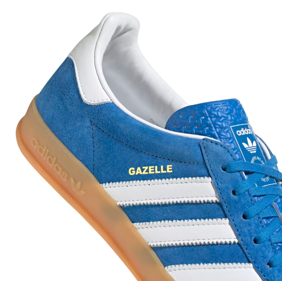 Tênis Adidas Gazelle Indoor "Blue Bird Gum" Azul, disponível na Cop Club.