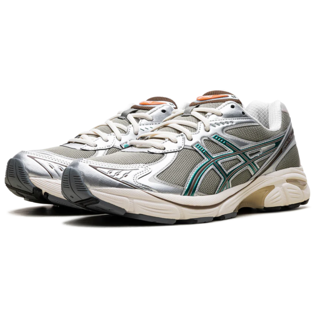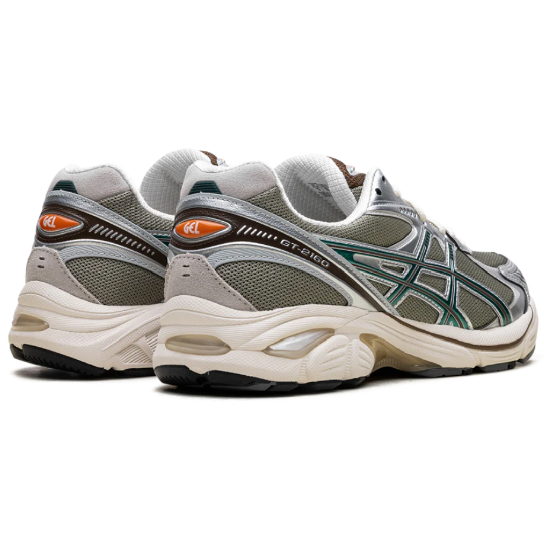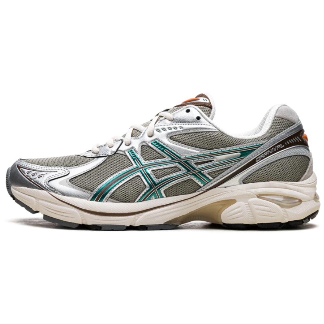 Tênis Asics GT-2160 x Carnival "Concrete Bloom" Cinza/Verde, disponível na Cop Club.