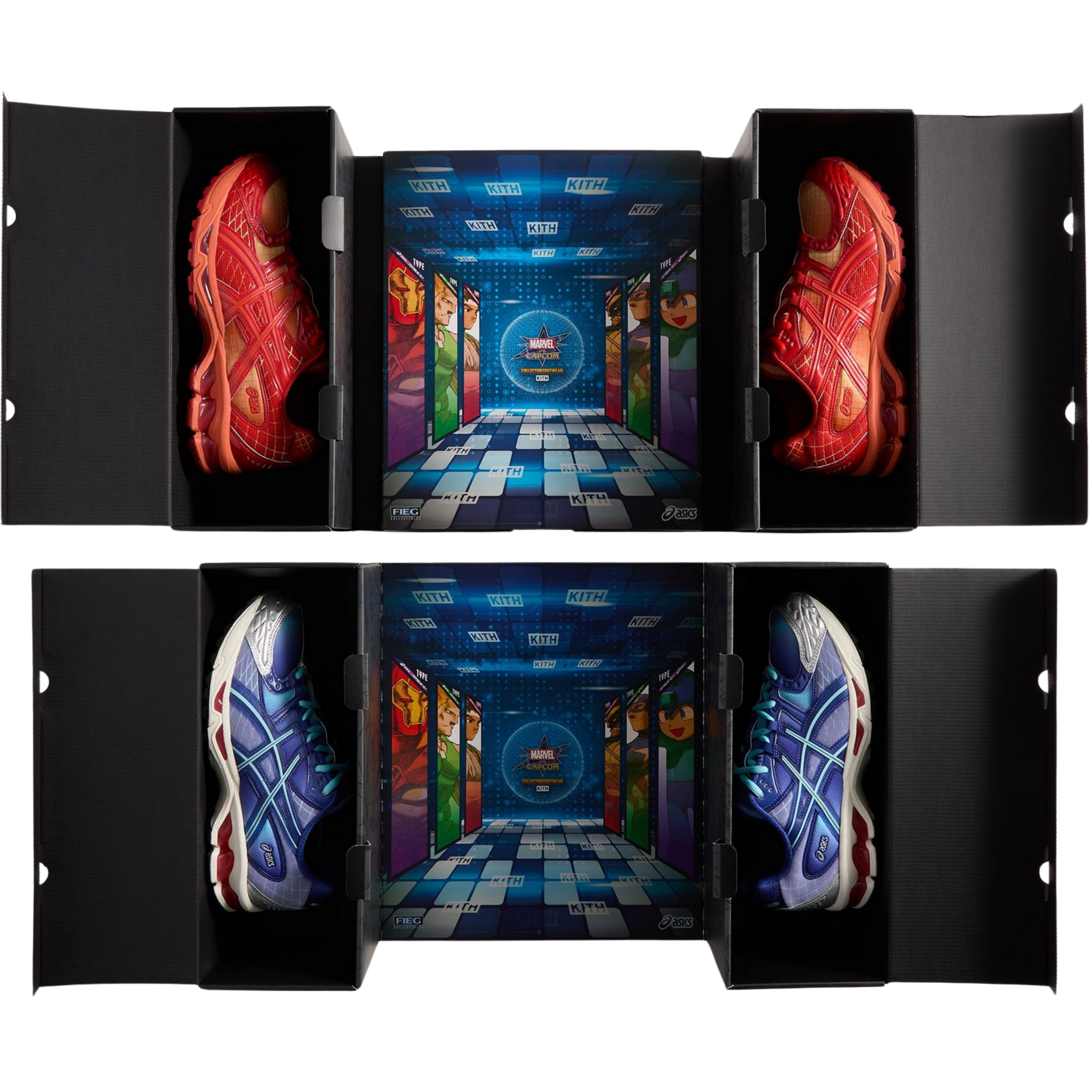 Tênis Kith x Capcom x Asics Marvel vs. Capcom Collection Gel-Nimbus 10.1 Double Box "Iron Man vs. Mega Man" Miulticolorido, disponível na Cop Club.