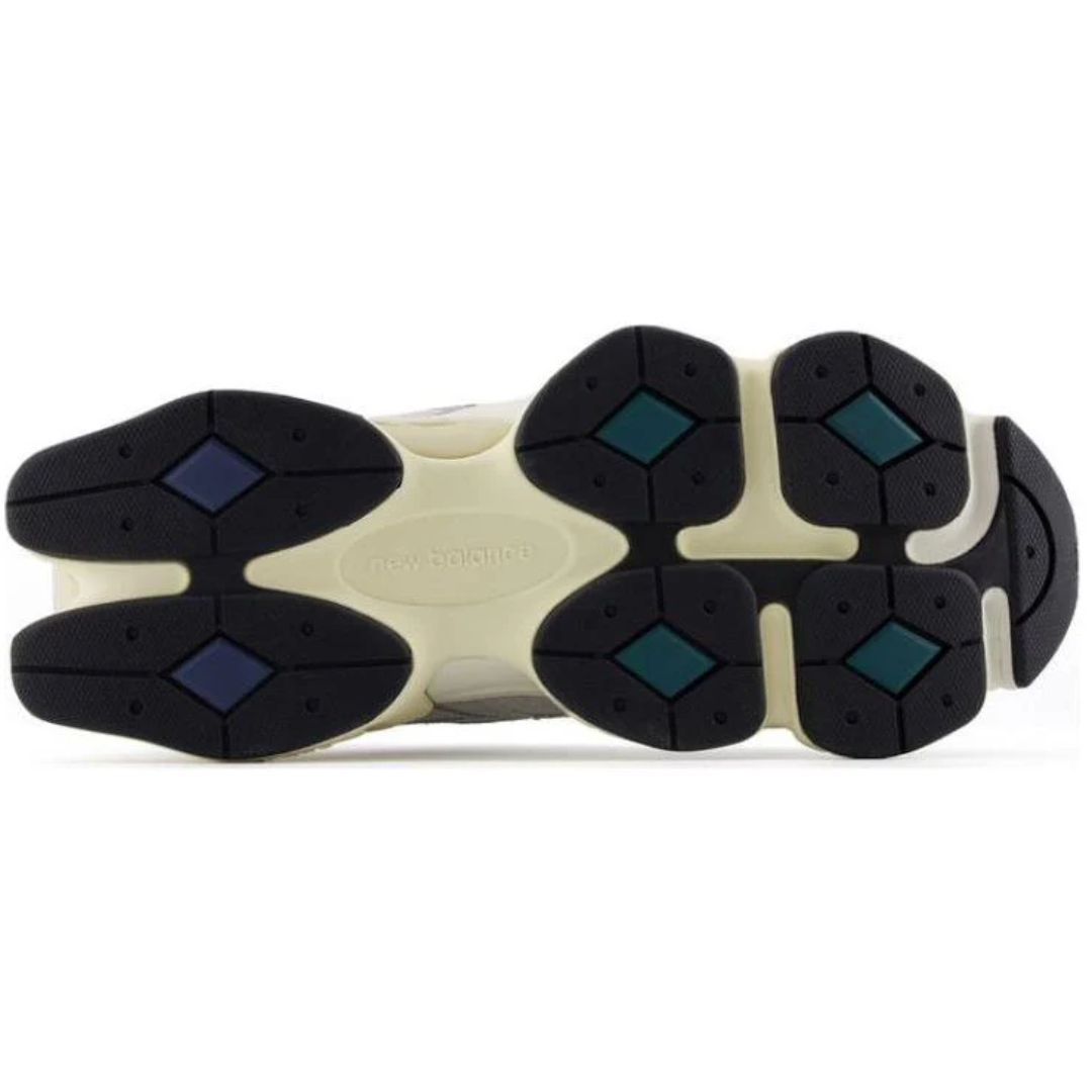 Tênis New Balance 9060 "Concrete Vintage Indigo New Spruce" Cinza/Verde, disponível na Cop Club.