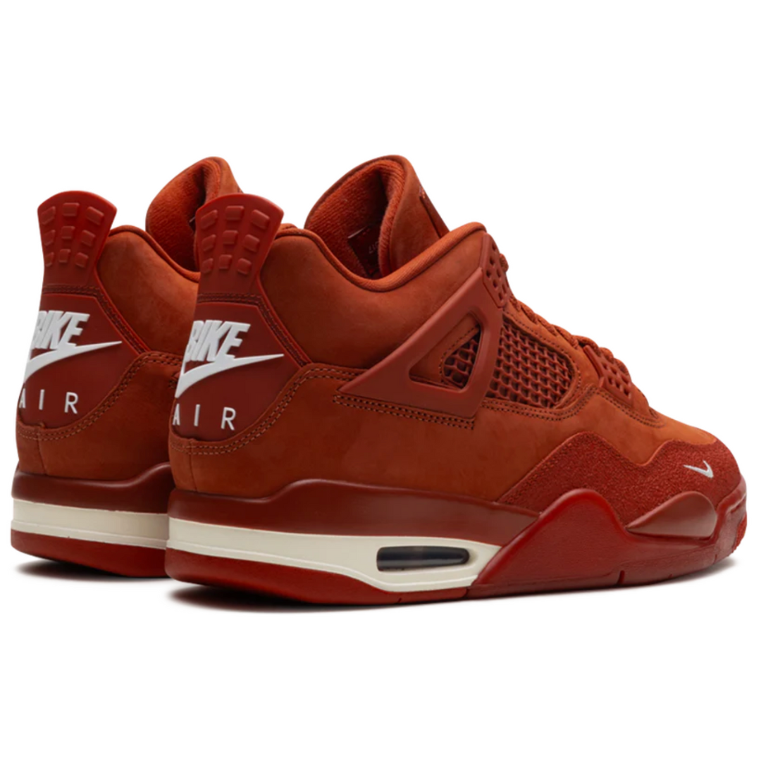 A collab entre a Jordan Brand e Nigel Sylvester, lenda do BMX e ícone do street style, resultou em um dos lançamentos mais marcantes do ano: o Air Jordan 4 "Brick by Brick". Essa edição especial une o legado das quadras com a autenticidade das ruas do Queens, em Nova York, bairro natal de Nigel. Inspirado na expressão "construído tijolo por tijolo" (brick by brick), o tênis simboliza o caminho de esforço, persistência e estilo que define a carreira de Sylvester. O cabedal é feito em camurça premium na cor Firewood Orange, remetendo à textura e tom dos tijolos vermelhos dos becos nova-iorquinos. A língua com espuma exposta traz um visual retrô, enquanto o mini Swoosh bordado no toebox adiciona um toque exclusivo e sutil, marca registrada de Nigel. O "BIKE AIR" substitui o tradicional "NIKE AIR" no calcanhar, reforçando a conexão com o mundo do BMX e dando uma identidade única ao modelo. O acabamento desgastado e os toques de material reflexivo (3M) representam as marcas de quem vive as ruas, seja pedalando, andando de skate ou apenas se expressando com estilo. A sola translúcida com leve efeito envelhecido completa o visual com um ar vintage e urbano.