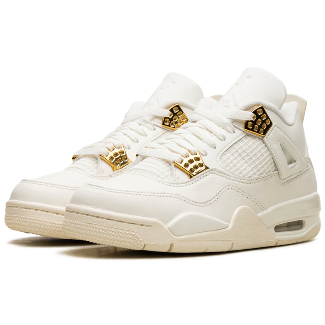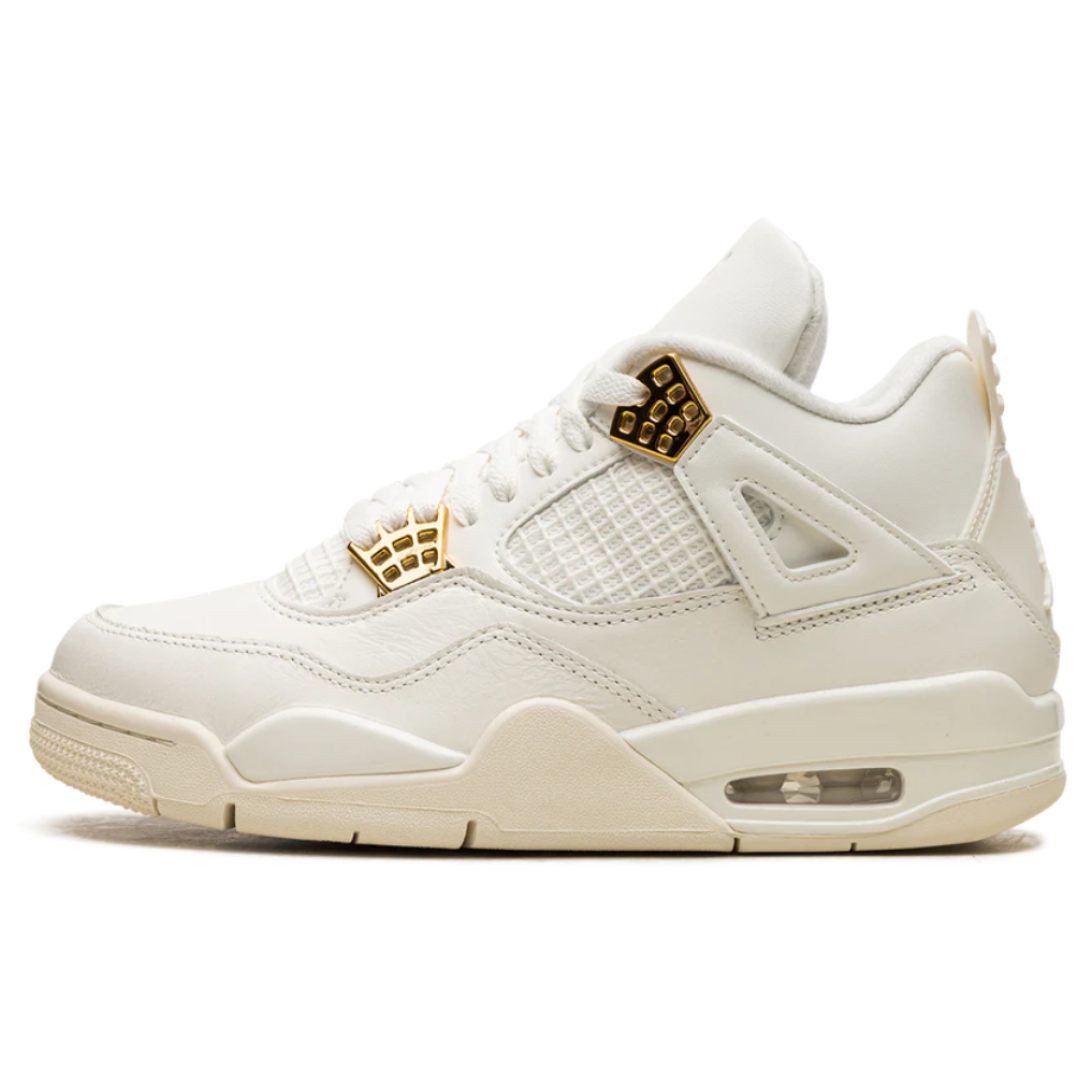 O Air Jordan 4 Wmns "Metallic Gold" une o DNA clássico da Jordan Brand com um toque luxuoso e feminino. Com cabedal branco clean e detalhes dourados metalizados, esse modelo é uma escolha certeira para quem busca elegância, autenticidade e presença no look streetwear.