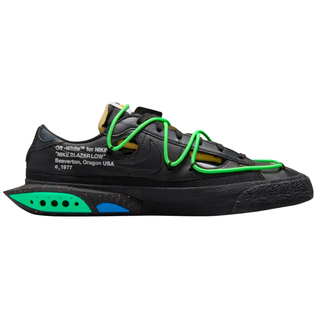 Tênis Nike Blazer Low x Off-White "Black/Electro Green" Preto/Verde, disponível na Cop Club.