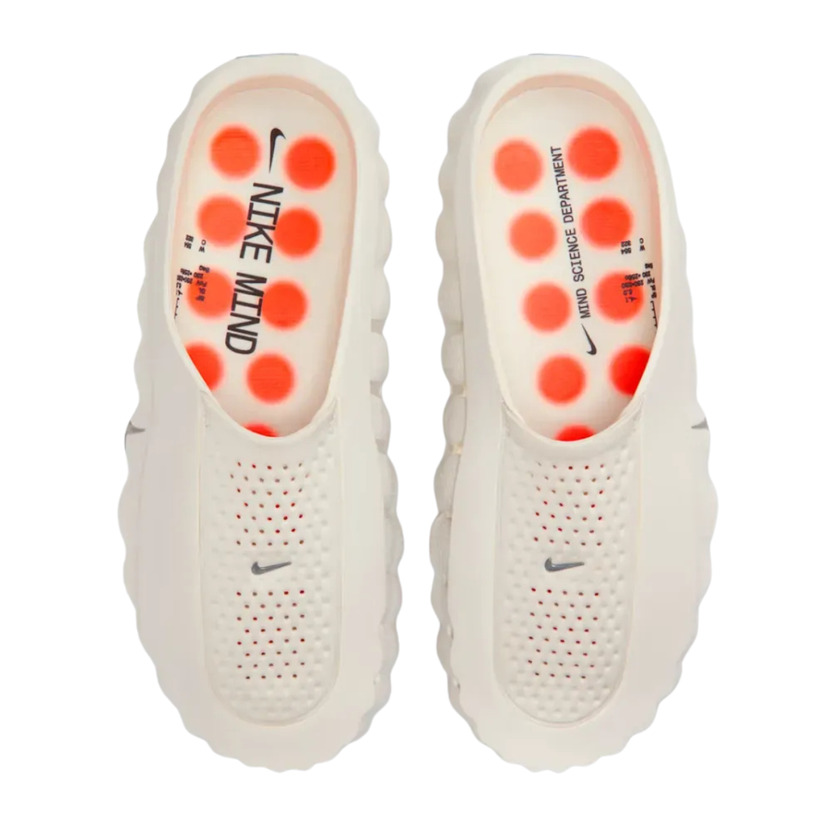 Um chinelo slip-on futurista, baseado em neurociência, projetado para foco mental e recuperação, com espuma moldada e 22 nós independentes que estimulam receptores sensoriais na planta do pé para maior presença e concentração.,