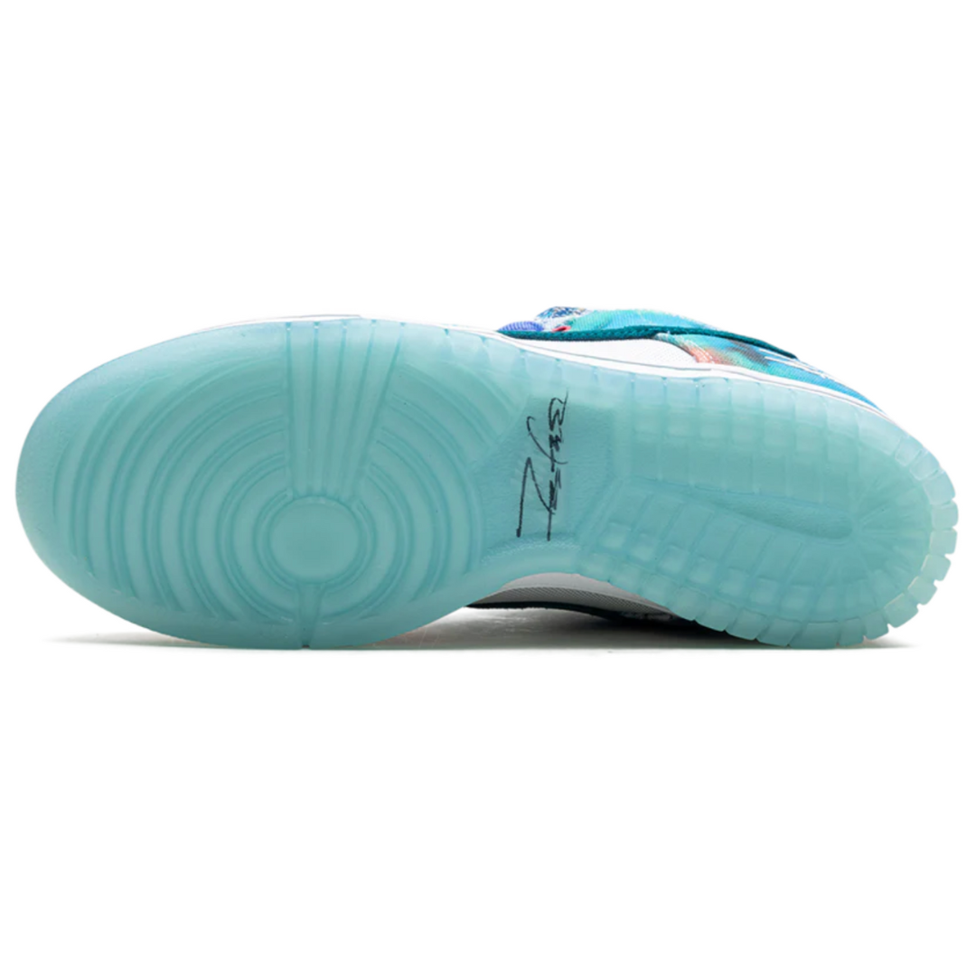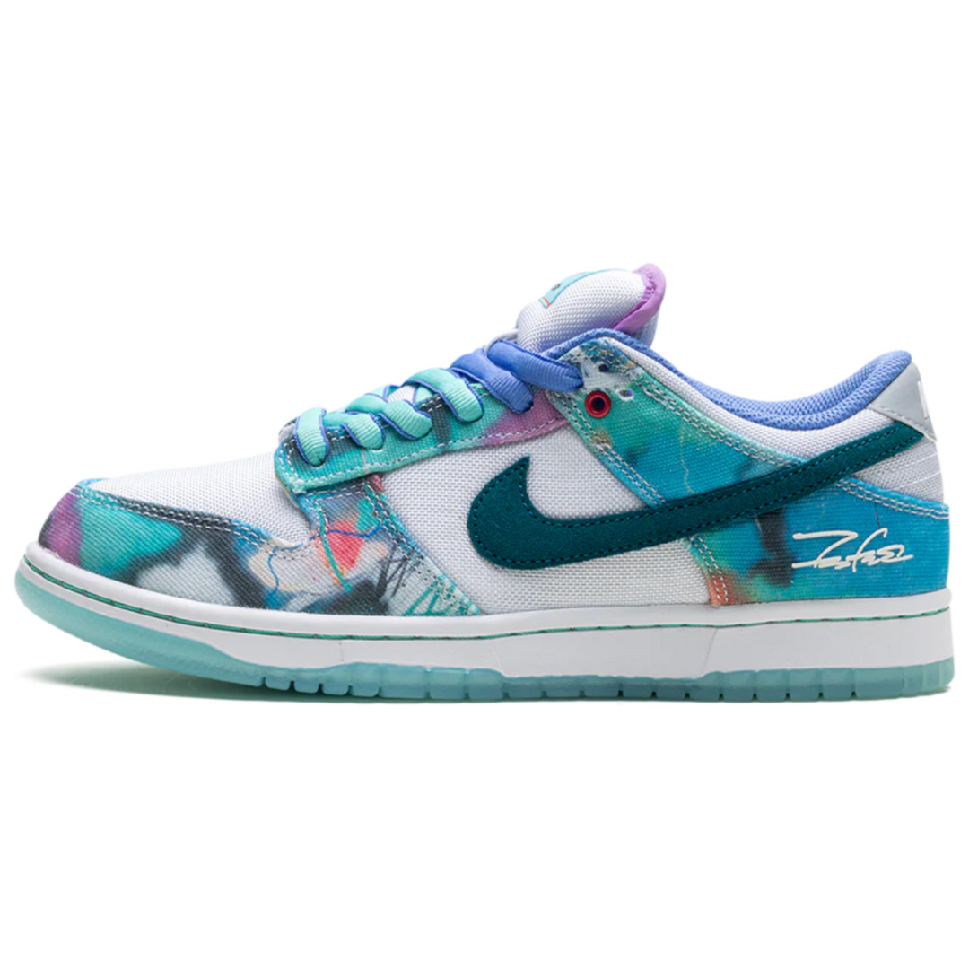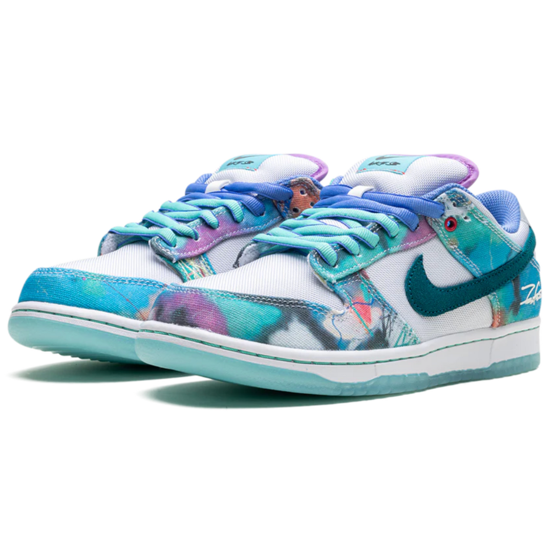 Tênis Nike SB Dunk Low x Futura Laboratories "Bleached Aqua" Multicolor, disponível na Cop Club.